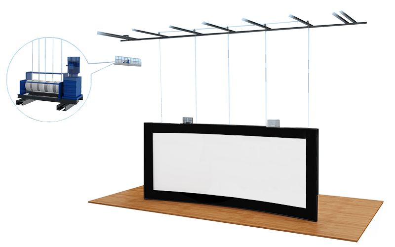 多功能銀幕架為三合一體式,可放映寬銀幕,遮幅寬銀幕,70mm大銀幕電影。通過電動調節左右遮幅機構使得放映任何一種電影時畫面周邊也為人們習慣的黑框,從而得到完美效果。